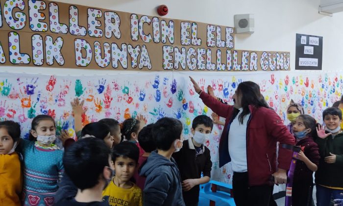 Adıyaman’ın Kahta ilçesinde TPAO Atatürk İlkokulu tarafından 3 Aralık Dünya Engelliler Günü dolaysıyla parmak boyası ile baskı çalışması etkinliği düzenlendi.