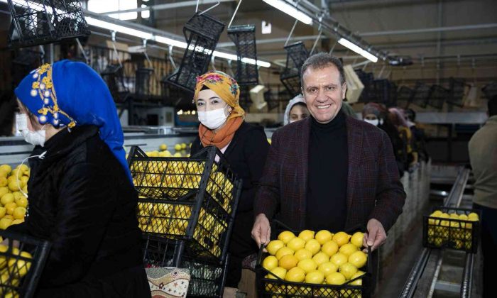 MERSİN (İHA) – Mersin Büyükşehir Belediye Başkanı Vahap Seçer, Erdemli ilçesindeki bir narenciye paketleme tesisinde emekçi kadınlarla buluştu. Kadınlarla birlikte kasalara limon yerleştiren Seçer, limon üreticisinin zor günler yaşadığına dikkat çekti. Belediye başkanlarına seslenen Seçer, “İhtiyaç sahibi vatandaşlarımıza limon dağıtmak istiyorlarsa bana ulaşmaları yeterli. Buradan üreticilerimizle kontak kurdurup, limonlarımızı Türkiye’nin her tarafına gönderme imkanımız var” dedi.