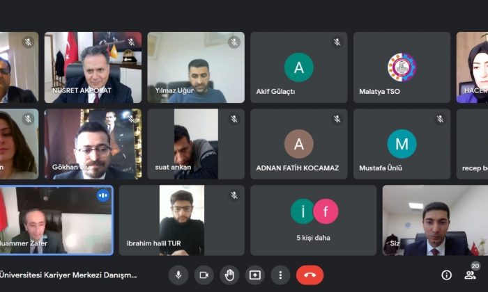 Malatya İnönü Üniversitesi Kariyer Merkezi’nin 2021-2022 yılı Güz Dönemi Danışma Kurulu ilk toplantısı yapıldı. Toplantı Rektör Yardımcısı Prof. Dr. Nusret Akpolat başkanlığında, Rektör Danışmanı ve Kariyer Merkezi Koordinatörü Doç. Dr. Hasan Yılmaz’ın moderatörlüğünde çevrim içi olarak gerçekleştirildi.