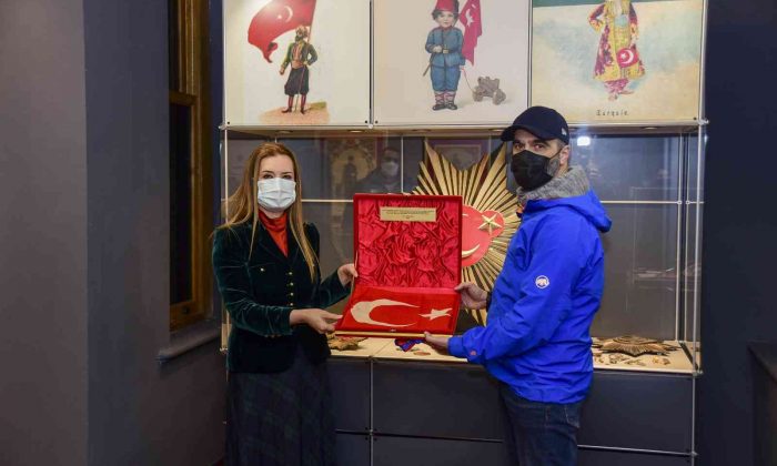 Dokuz Eylül Üniversitesi (DEÜ) Rektörü Prof. Dr. Nükhet Hotar, geçtiğimiz şubat ayında Azerbaycanlı dağcılar İsrafil Ashurlı ve Rinat Rahimkhanov’la DEÜ Bayrakbilim ve Türk Bayrakları Müzesini ziyaret etmiş, iki sporcuya 1950 yılından kalan el yapımı yün Türk bayrağı armağan etmişti. İki dağcı, Azerbaycan’ın Karabağ’daki şanlı zaferinin yıl dönümünde Rektör Hotar’ın hediye ettiği Türk bayrağını 5 bin 137 metre yüksekliğindeki Ağrı Dağı’na tırmanarak iki kardeş ülkenin bayraklarını gururla dalgalandırdı.
