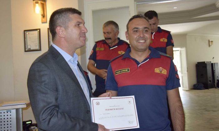 Başkan Ercengiz daha sonra itfaiye personeline teşekkür belgesi verdi.