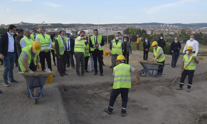 Batı Anadolu’nun en büyük Tunç Çağı höyüklerinden olan Kütahya’nın ilk yerleşim yeri Tavşanlı Höyük’te arkeolojik kazı çalışmaları başladı. Kütahya’nın 8 bin yıl öncesine ışık tutacak kazı çalışmalarında madencilik ve tekstile ait ilk buluntuların heyecan verici olduğunu söyleyen Vali Ali Çelik, “Kazı çalışmaları ilerledikçe Batı Anadolu’nun merkezi olduğuna dair bir sürecin hep beraber şahitliğini yapacağız” dedi.