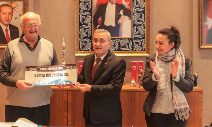 Şehirde öne çıkan isimlerin sokak isimlerin verildiğini hatırlatan Başkan Işık, “Bahçelievler Mahallesi’nde bir sokağımızın ismini meclis kararı ile Hamza Üstünkaya’ya verdik. Adınızın yaşadığı bir sokağınız var. Hayırlı uğurlu olsun” dedi.