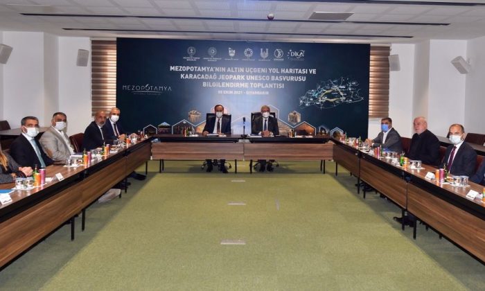 Diyarbakır ve Şanlıurfa valilerinin katılımıyla Mezopotamya’nın Altın Üçgeni Yol Haritası ve Mezopotamya Karacadağ Jeopark Başvurusu sürecine ilişkin yapılan çalışmalar ve gelinen aşamaya ilişkin toplantı düzenlendi.