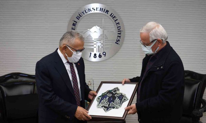 Kazı çalışmalarında Başkan Büyükkılıç’ın büyük destekleri olduğunun altını çizen Baş, “Bu çalışmalar çerçevesinde genel müdürlüğümüz dışında Kayseri’de yerelde de çok büyük destekler alıyoruz, bu desteklerin başında kazının başlangıcından itibaren Kayseri Büyükşehir Belediyesi’nin desteği çok fazla, her konuda. İyi bir kazı sezonu, kazı çalışması yürütüyoruz. Kazı çalışmalarının 12 aya çıkması bizleri memnun etti, o süre içerisinde biz düşündüğümüzden daha ileride kazı sezonunu sürdürüp, önemli şeylerle karşılaşacağımız düşünüyoruz, Kayseri ve Türk kültürüne önemli katkılar sağlayacağına inanıyoruz” ifadelerini kullandı. Ziyaret sonrası Prof. Dr. Ali Baş, Başkan Büyükkılıç’a günün anısına Keykubadiye Sarayı kazısında açığa çıkarılmış olan çift başlı kartal figürü ile süslenmiş sekiz köşeli yıldız çiniye ait fotoğrafın tablosunu hediye etti.
