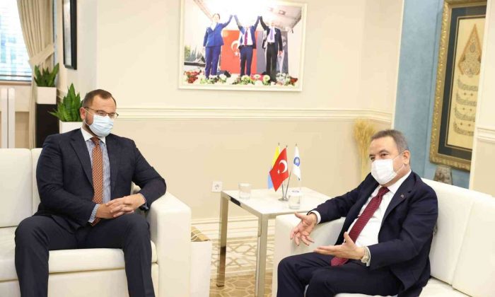 UKRAYNA VOLİN BÖLGESİ LUTSK BELEDİYE BAŞKANI IHOR POLİŞUK, ANTALYA BÜYÜKŞEHİR BELEDİYE BAŞKANI MUHİTTİN BÖCEK’E NEZAKET ZİYARETİNDE BULUNDU.